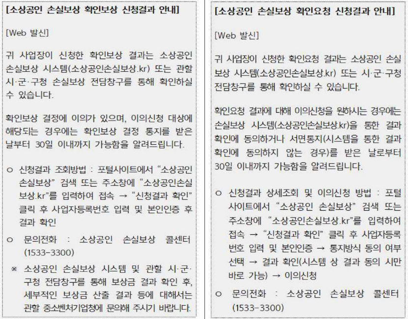 소상공인 손실보상, 손실보전금 신청 안내 예시[오리지널]